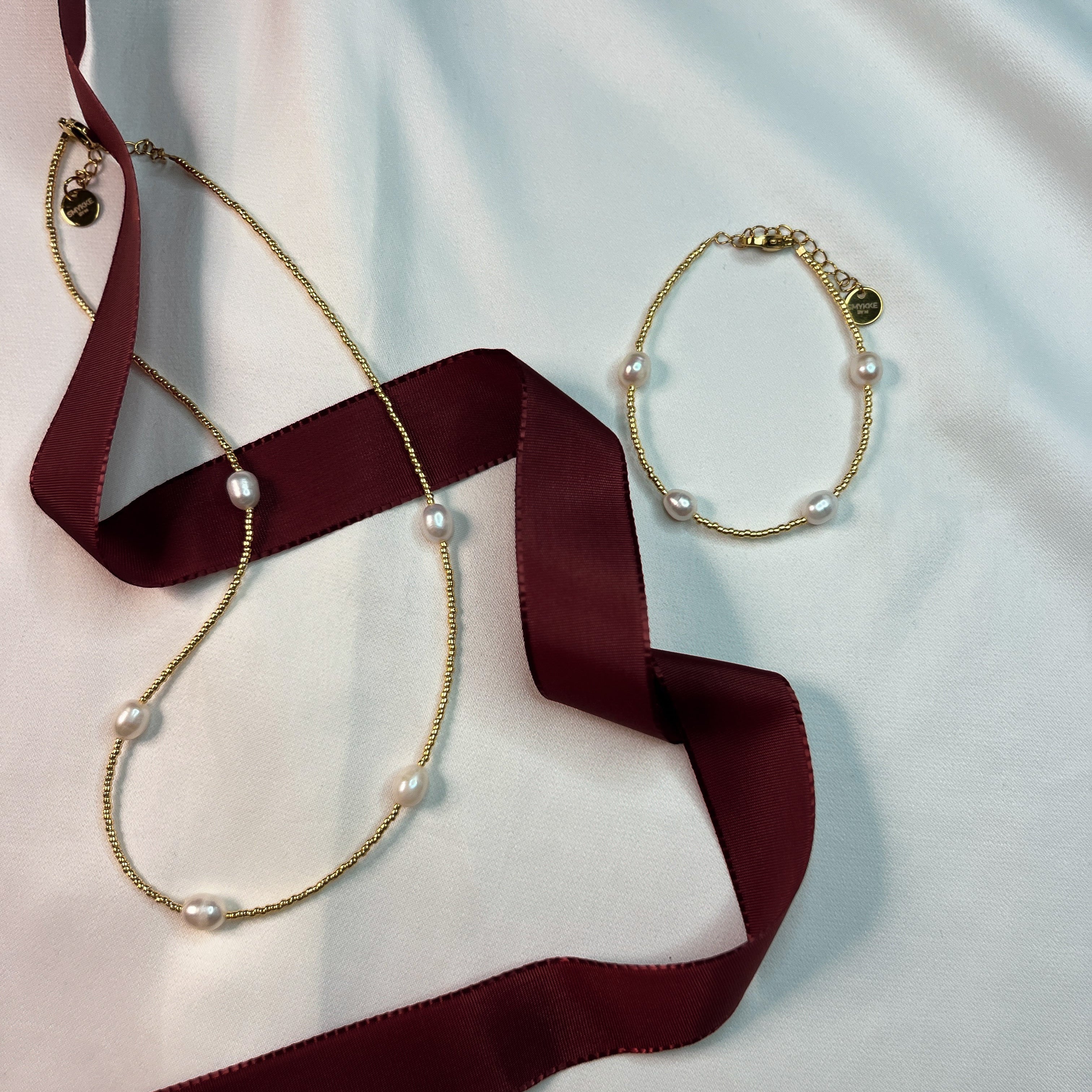 Smykkesett - Gullhjerter - Halskjede & Armbånd