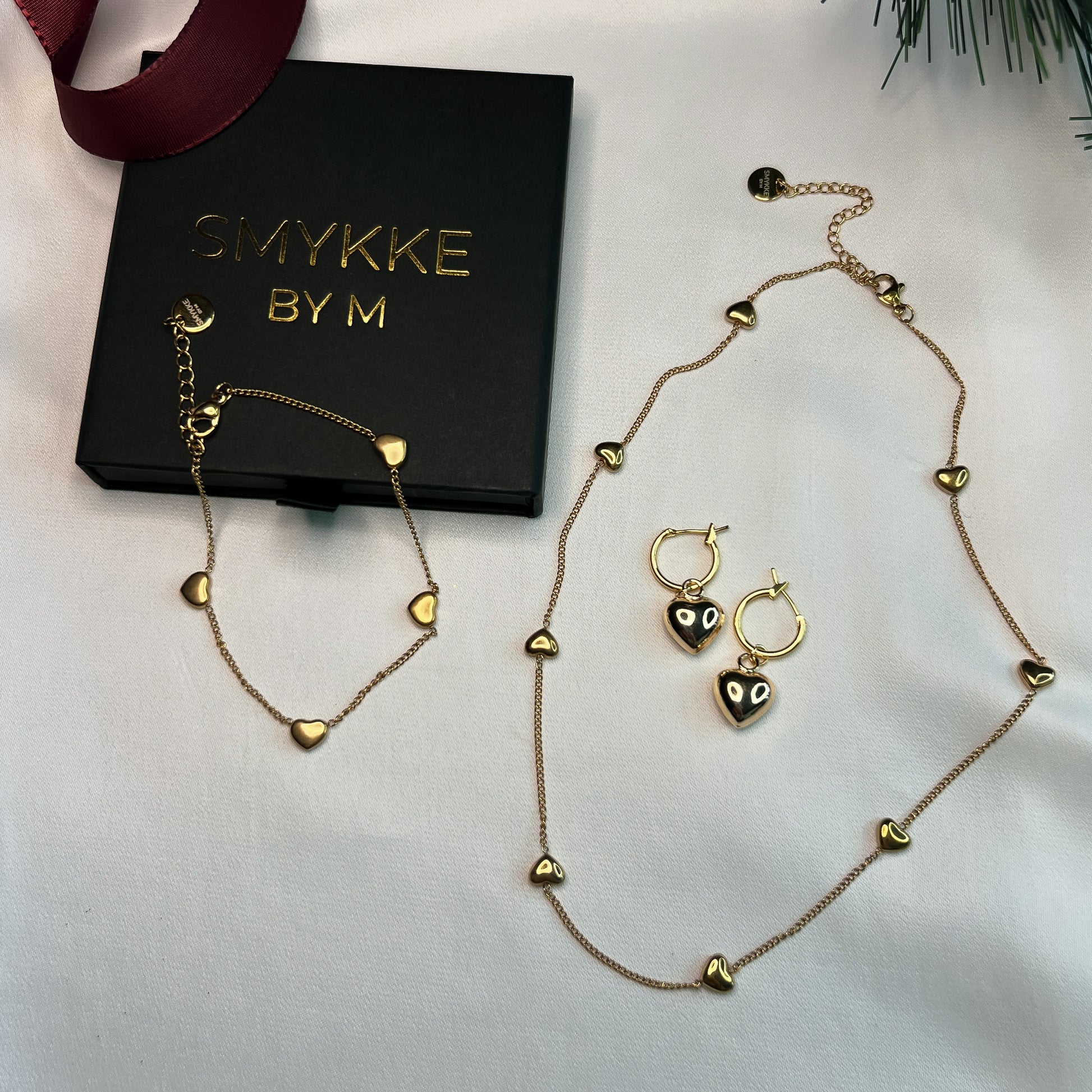 Smykkesett - Gullhjerte - Øredobber, Halskjede & Armbånd