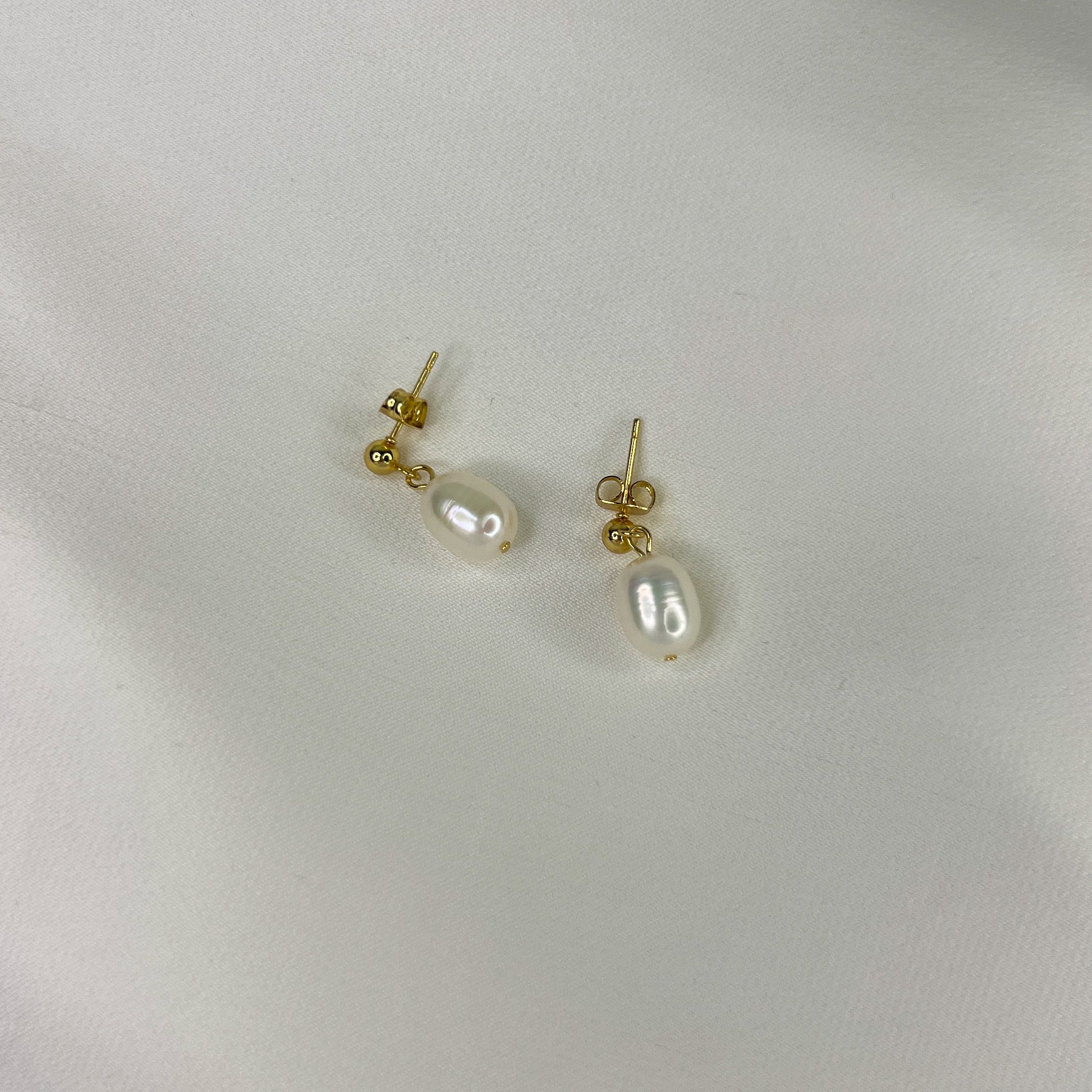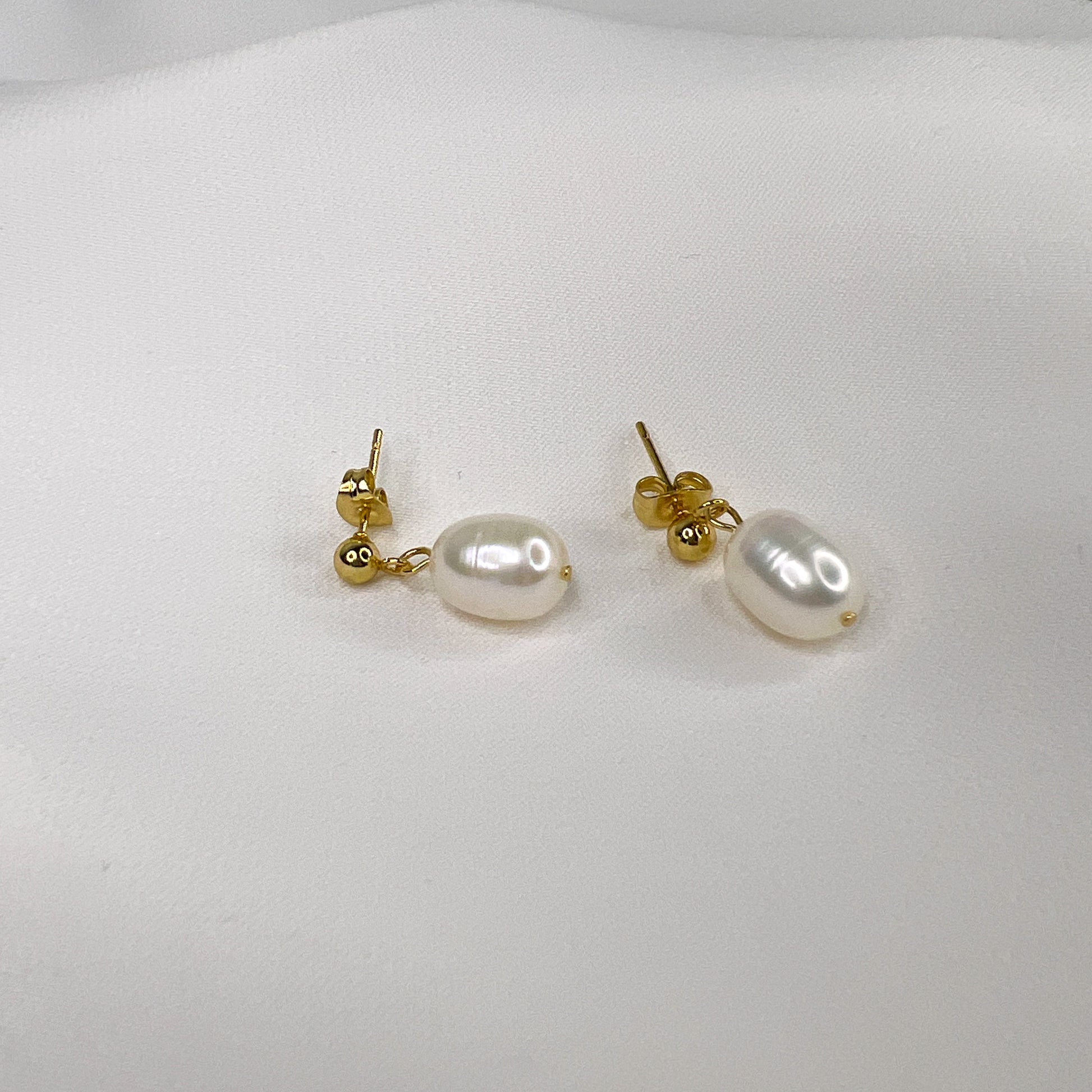 Øredobber i gullbelagt rustfritt stål med ferskvannsperle. Ørepynten kan pynte opp ethvert antrekk og kan brukes til mange anledninger, både til hverdags, fest og bryllup.