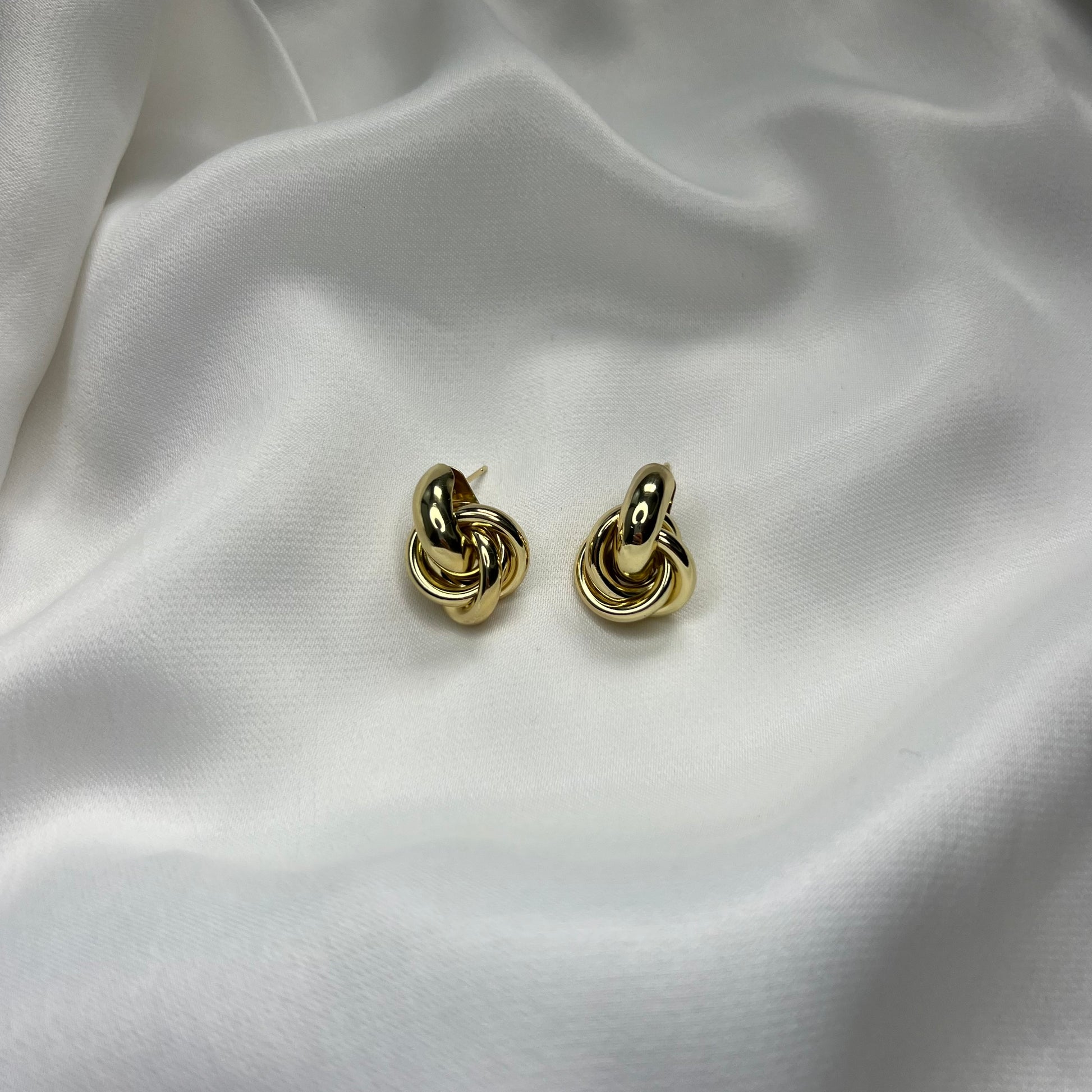 Disse elegante stud øredobbene i gullfarget metall har et tidløst knutedesign som passer perfekt til både hverdagsbruk og spesielle anledninger. Øredobbene er lette og sitter fint på øret. Knute øredobbene gir et sofistikert preg på ethvert antrekk.